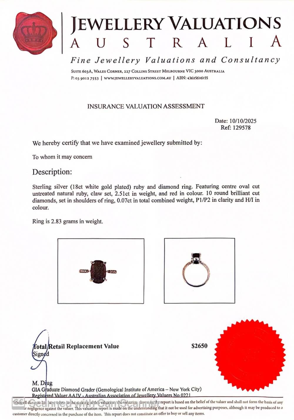Ring Weight: 2.83 grams.