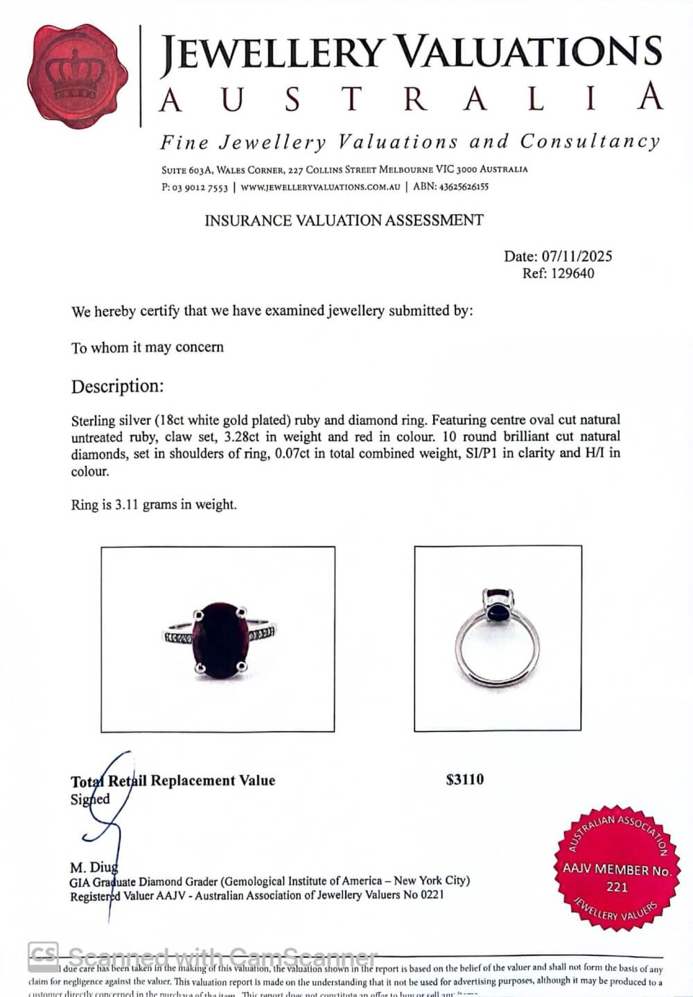 Certified by Jewellery Valuations Australia – giving you confidence and peace of mind.
