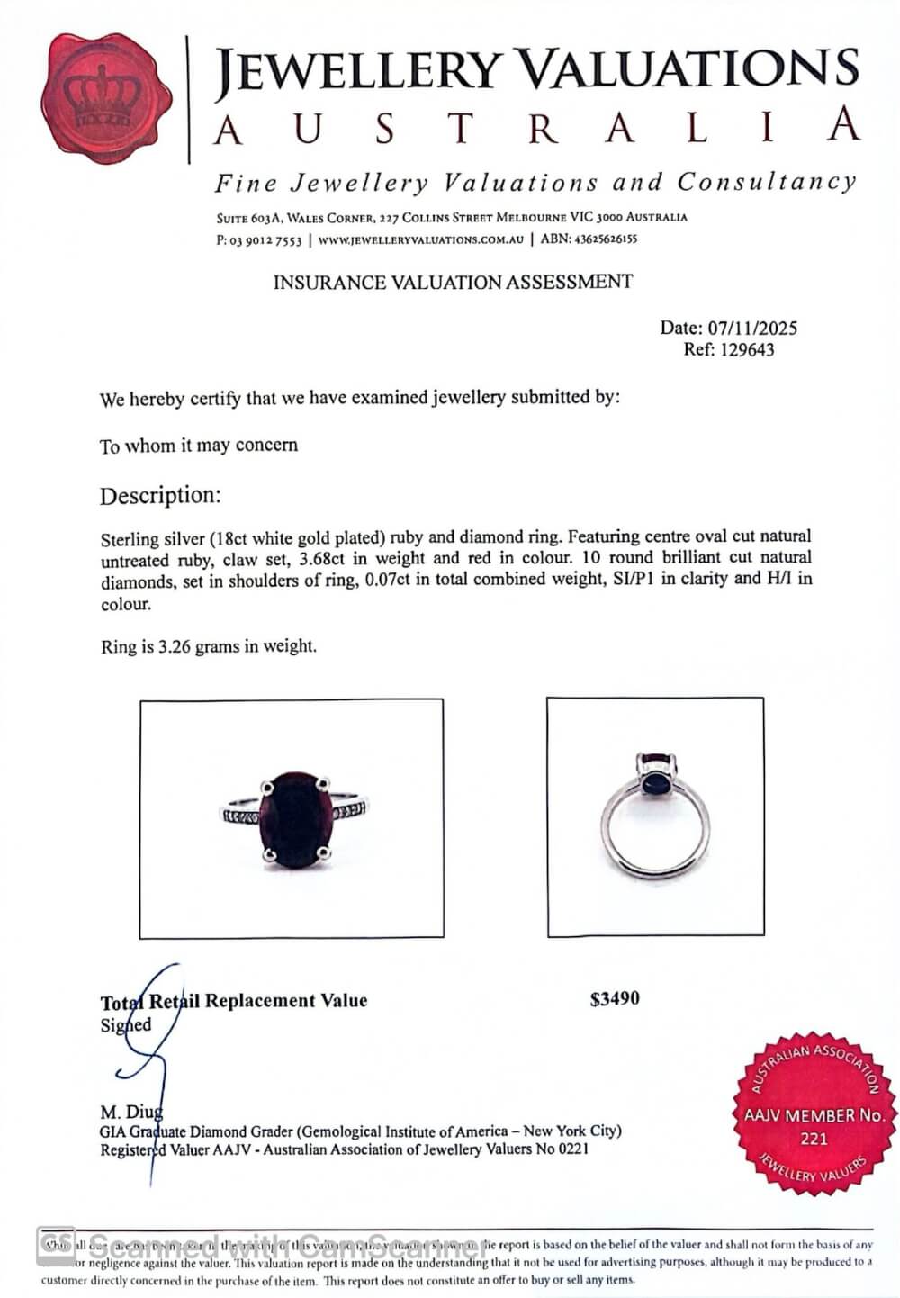 Certified by Jewellery Valuations Australia – giving you confidence and peace of mind.