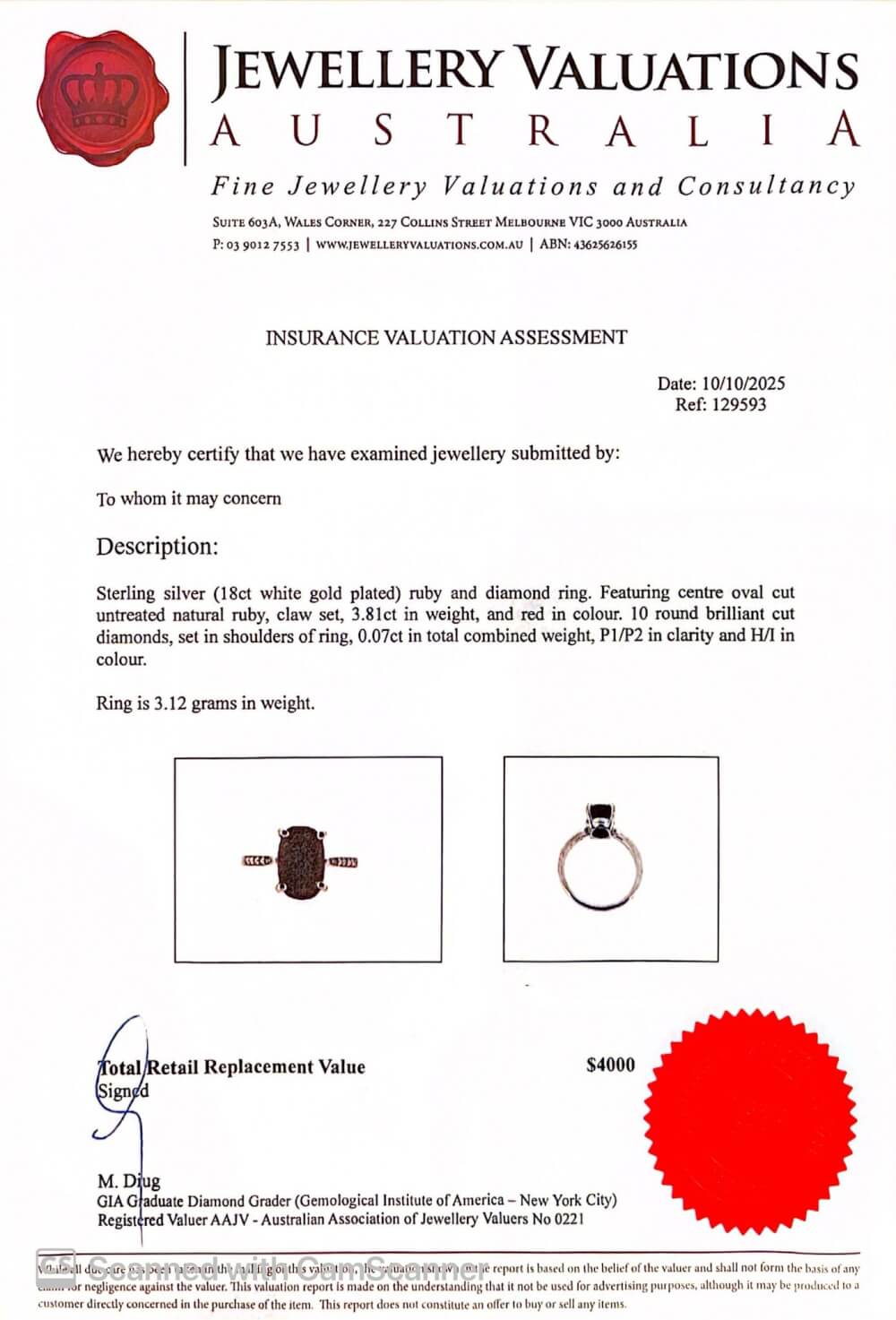 Ring Weight: 3.12 grams.