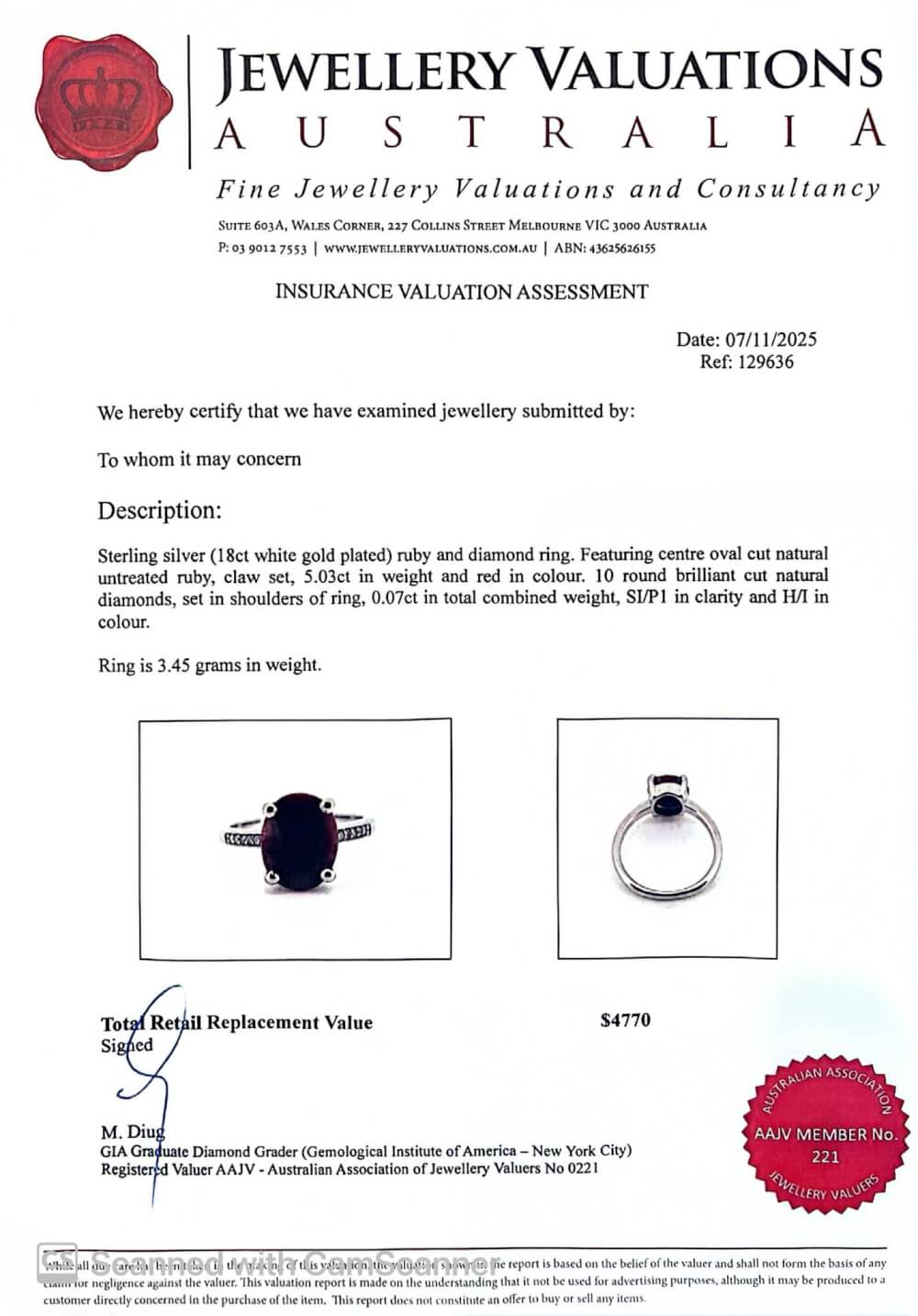 Certified by Jewellery Valuations Australia – giving you confidence and peace of mind.