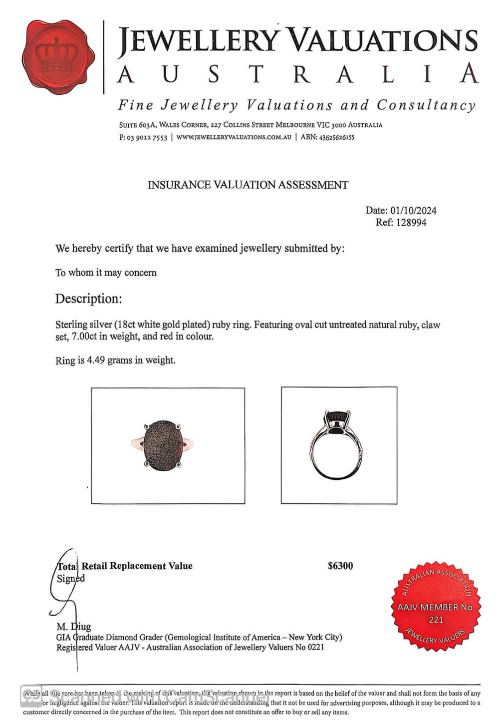 Professionally assessed and certified by Jewellery Valuations Australia, this striking piece combines substantial gemstone weight, refined craftsmanship, and enduring luxury.