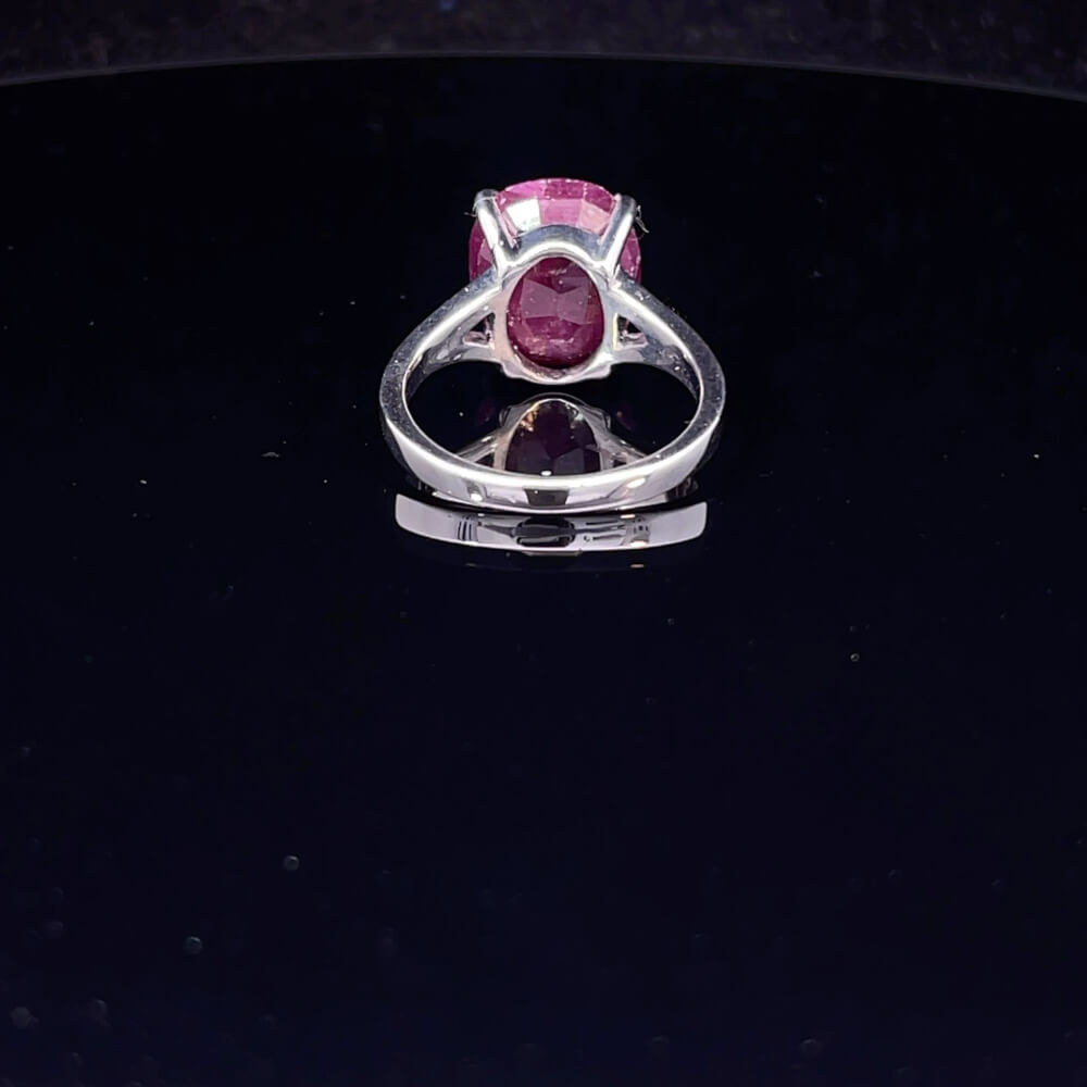 Centre Stone: Untreated natural oval cut ruby, an impressive 7.00ct, rich red in colour, claw set for maximum presence and brilliance.