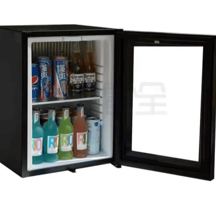 Minibar Glass Door without Compressor (Absorption Technology) Minibars are a small private snack and beverage bar, often found in luxury hotels. Our new minibars are energy saving, environmentally sound, and noiseless with absorption refrigeration technology. The cooling technologies applied, namely the absorption hotel minibar, the silent compressor and the absorption hotel minibar, distinguish Eston Amenities’s range of hospitality or hotel minibars from each other.