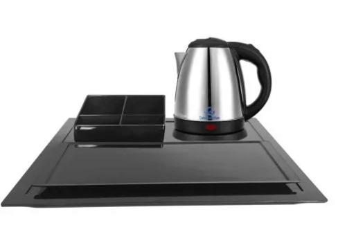 Hotel Guest Room Electric Kettle with Black Melamine Tray Set