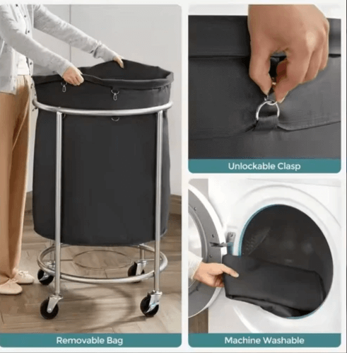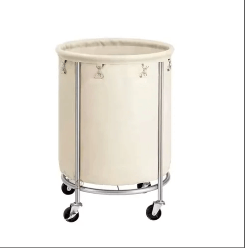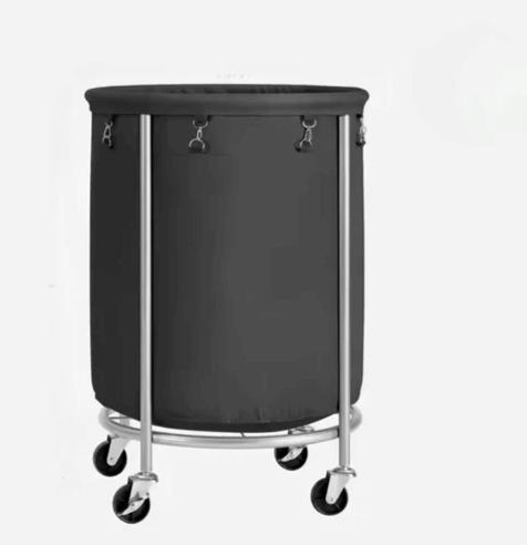 Metal Round Movable Laundry Basket Cart With Wheels Hotel Dirty Clothes Storage Baskets, hotel use solid wheels folded metal laundry cart linen trolley
