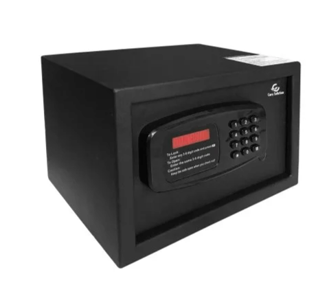 •Type Of Product : Electronic Safe •Color : Black •Material : Cold Rolled Steel •Finish : Powder Coating •Power : 4*AA 1.5V batteries(not included) •Product : Size 200x310x200 mm •Body : 1.5mm/Door : 5mm, •Net Weight : 6.5kg •Display : Led display screen