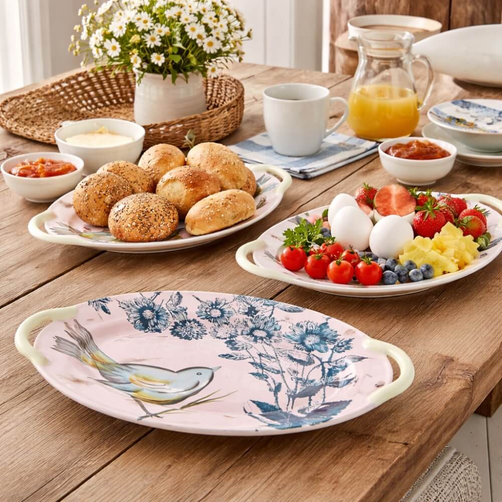 Bring a relaxed coastal feel to your table with the Lagoon Bird Oval Platter from the Lagoon Bird Collection. Featuring a hand painted style bird motif with soft natural tones, this platter is designed for easy, everyday serving in both indoor and outdoor settings.