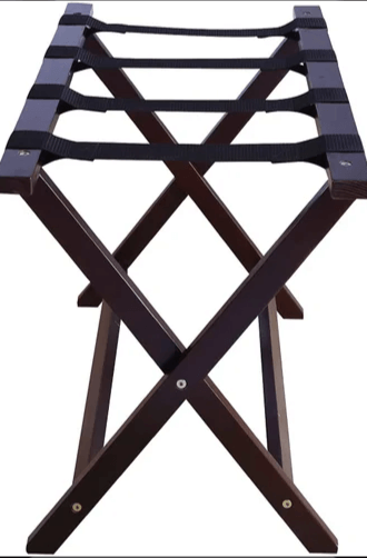 A luggage rack in your home is not just for you but for guest as well, our wooden luggage rack is the classic hotel style, its simple attractive, and well built -able to withstand the rough and tumble movemeent of heavy luggage. Supports upto 150 lbs on top shelf. When not in use, its folds up for easy storage.
